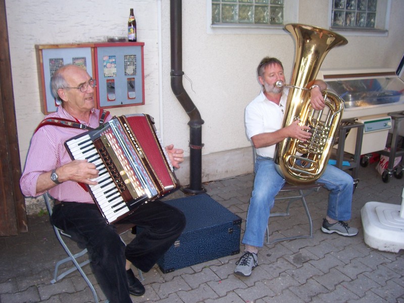 Mit den Musikanten "Willi und Hans" startete danach das Sommerfest der Siedlergemeinschaft in den gemütlichen Teil. Mit lecker gegrillten Bratwürsten und saftigen Steaks versorgten Manfred Belusa und Werner Kirschner, unterstützt von Jochen Weiß, Manfred Eckert und Anton Fenk die Gäste. Besonders appetitlich waren wieder einmal das Salatbuffet und die zahlreichen selbstgebackenen Kuchen der Vereinsmitglieder am Kaffeestand. Diese managten vorbildlich Anni Hausner, Renate Weiß, Marianne Zangl, Monika Frieser und Petra Renner.