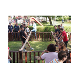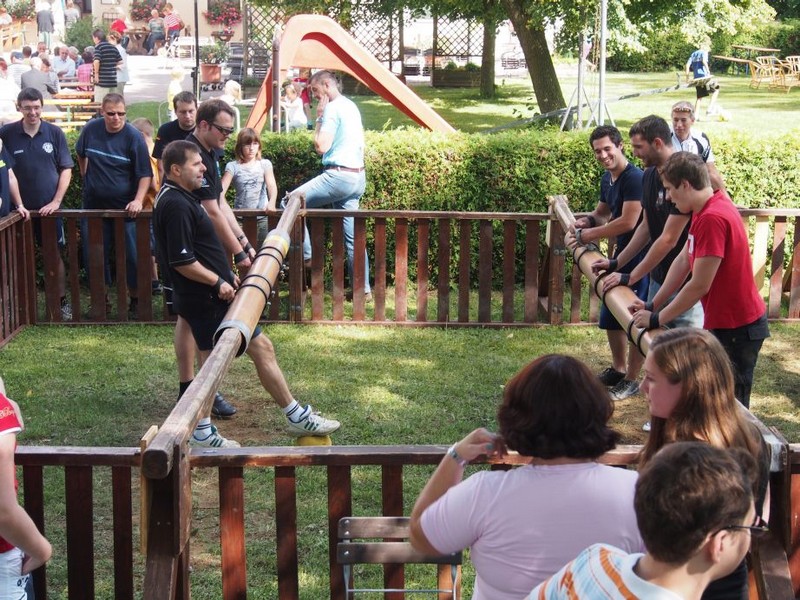 Seit 2009 ist das Menschenkickerturnier ein fester Bestandteil dieser Feier. Dieses mittlerweile schon fast zur Tradition gewordene Spektakel erfreut sich immer mehr Zuspruch und animierte acht Mannschaften zur Teilnahme, darunter erfreulicherweise wieder 3 jugendliche Teams vom Feuerhof, neben den Siegern noch Hardcore Feuerhof 1 und 2. Aus der Stadt beteiligte sich ein Team des THW und unter der Führung des 2. Bürgermeisters Günter Koller die CSU-Mannschaft Blackfeet Fighters. Dazu rangen noch die Clubberer aus Kleinfalz und eine Abordnung des FC Bayern Fanclubs mit dem geheimnisvollen Namen Oppprüwäs um die Punkte. Spontan bildete sich noch um Karin und Tamara Kraus ein Team, das sich spontan die Spontankickers nannte. Unter der Turnierleitung von Karl-Heinz und Gudrun Neidl versuchten die Teams, wie beim Kicker an Stangen, die meisten Tore zu erzielen. Die Schirmherrschaft übernahm wie immer 3.Bürgermeister Hans-Jürgen Reitzenstein, der auch gerecht und ausdauernd in allen 18 Spielen als Schiedsrichter fungierte. Nach der Vorrunde wurde gekämpft, taktiert und mit vielen akrobatischen Übungen versucht den besten Platz zu erreichen. Das Spiel um den dritten Platz konnten die Blackfeet Fighters gegen den 1. FCN Fanclub zur Linde Kleinfalz für sich entscheiden. Im rein Feuerhofer Finale dominierten die Faierhufer Kickers die Jungs von Hardcore Feuerhof 1, die bis dahin noch keinen Punkt abgegeben hatten. Den Kickers gelang mit 5:0 der bisher höchste Finalsieg in der kurzen Turniergeschichte. Platz fünf bis acht belegten nach zum Teil knappen Entscheidungen das THW-Su.-Ro., die Spontankickers, die Oppprüwäs und Hardcore Feuerhof 2.