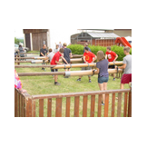 Sportlich sicherte sich der 1.FCN Fanclub Zur Linde Kleinfalz den Stadtmeistertitel im Menschenkicker. Die Sonne strahlte vom Himmel und bot bestes Wetter für das diesjährige Sommerfest der Siedlergemeinschaft Feuerhof. Dem entsprechend füllte sich auch der Garten des Vereinswirts Zum Bartl mit Besuchern aus und um den Ortsteil. Am frühen Nachmittag eröffnete der Siedlervorstand Klaus Frieser und 1.Bürgermeister Michael Göth mit der 6. Auflage des Menschenkickerturniers den sportlichen Teil. Vier Mannschaften traten in dem überdimensionalen Kickerkasten gegeneinander an um sich den Titel Stadtmeister zu sichern. Schirmherr und 3.Bürgermeister Hans-Jürgen Reitzenstein übernahm wieder die schwierige Rolle des Schiedsrichters. In jeweils zwei mal 7,5 Minuten boten die angetretenen Teams herzerfrischenden, spannenden und fairen Ballsport an der Stange, zur Freude der Zuschauer. Akribisch wurden dabei alle Ergebnisse von der Turnierleitung Gudrun und Karl-Heinz Neidl notiert und ausgewertet.