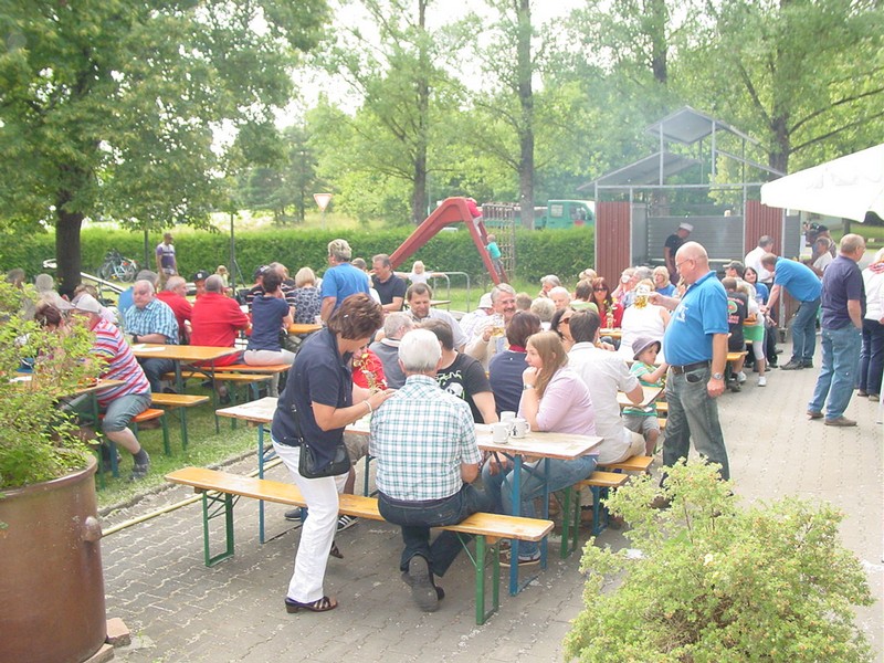 Während sich die Teams sportlich Betätigten konnten die Gäste aus einem reichhaltigen Angebot Schlemmen. Kaffe, selbstgebackene Kuchen, diverse Grillspezialitäten und ein großes Salatbuffet luden zum Naschen ein. Kühles Sperberbier, Wein und alkoholfreie Getränke löschten den Durst der kleinen und großen Besucher. Ein besonderer Genuss war aber wieder das von Hans-Rolf Linke selbstgebraute dunkle Bier. Nur für die Siedler wird der milde und alkoholärmere „Malzengel“ hergestellt und angeboten. Alle die mehr über dieses Bier wissen möchten sollten einen Blick ins Internet unter, www.feuerhofer-kellerbraeu.de, werfen.