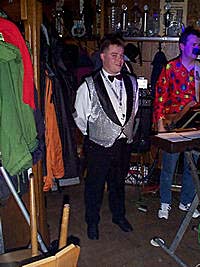 "Maschendrahtzaun á la Feuerhof"Nach einigen Runden flotter Tanzmusik betrat Karl-Heinz Neidl mit Zylinder und Discofliege am Hals die Bühne. Gekonnt präsentierte er, live gesungen, in eigenen Versen die Stimmungslagen eines Ballbesuchers vom Beginn über den Rausch bis zum Erwachen und dem erneuten Schlückchen Gerstensaft. Mit einem eigenen "Maschendrahtzaunlied" setzte er ein wahres Zugabezuckerl drauf.