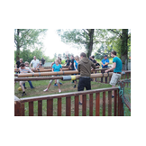 Während des Menschenkickerturniers wurden für die leider nur wenigen anwesenden Kinder je nach Alter oder Vorlieben Ausmalblätter, Sudokus oder Märchenrätsel kostenlos angeboten. Nach dem Turnier durften sie auch selbst das Fußballspiel an den Stangen testen.